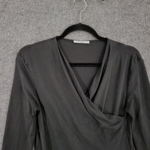 MM LAFLEUR The Octavia Top Black Faux Wrap Long Sleeve Minimalist SIZE XS