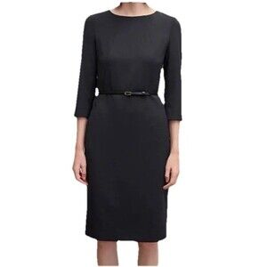 MM. LaFleur Etsuko Sheath Dress Black Sz 16 3/4 Sleeve with Pockets Office Siren