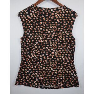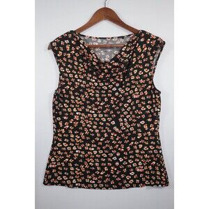 MM LaFleur Floral Sleeveless Top Size Medium Black Red Slinky Stretchy Cowl 6 8