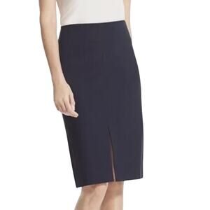 MM LaFleur Navy Blue Greenpoint Center Back Zip Pencil Skirt Front Slit Size 6