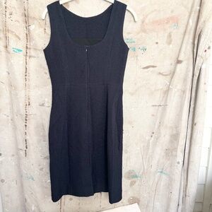 - Textured dot pattern (blue embroidered dots on a black dress)