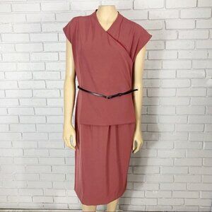 Inspired by the hourglass shapes of the 1950s, this machine-washable dress provides instant impact. With a chic wrap detail, structured cap sleeves, and an accent belt (included) that cinches the waist, it’s sleek, unusual, and appropriate all at once. Side panels sculpt the torso, and the slightly stretchy twill fabric balances structure with comfort. 50% Triacetate, 50% Polyester.