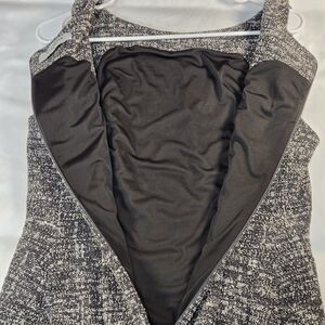 This stylish and versatile MM LaFleur dress is perfect for any occasion. The Lydia Boucle dress features a boat neckline, sleeveless design, and a zip closure. Its black and white tweed fabric with colorful accents and strap details makes it a great choice for parties, cocktails, workwear, and business events. The knee-length dress is designed for women in size 10 and has a pencil design with a sheath style. It is suitable for all seasons, including winter, summer, fall, and spring.