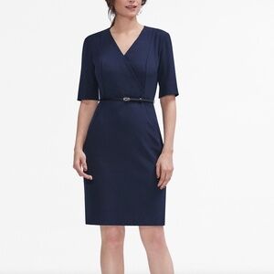 Doesn’t this dress make you want to stand up a little straighter? With a crossover V-neck, generously-sized pockets, a belted waist, and curved seams that elongate the body, this tailored number has all the makings of your next workwear staple. Oh, and did we mention that you can throw it in the washing machine?
