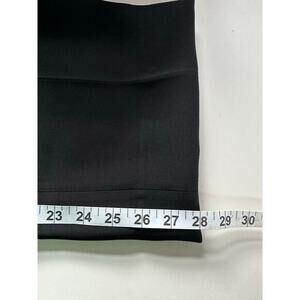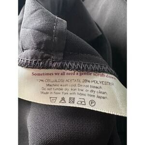 DETAILS: Snaps at interior of hem to adjust inseam from approx 28-30", cellulose acetate/polyester blend, stretchy, zip button side closure, pockets, Black
