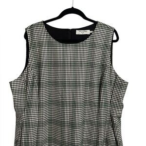 MM Lafleur Black White Green Houndstooth Sheath Dress Gingham W Pockets Wool 20