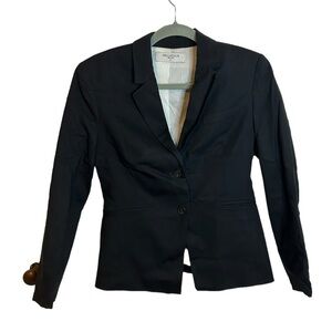 Pre owned excellent condition. The only flaw is minor discoloration on inside neckline lining. Otherwise perfect. Really nice black two button structured blazer. This is 96% wool and has some stretch. WOMENS size 2.