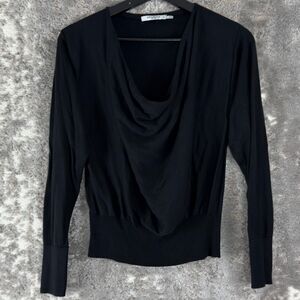 MM Lafleur Sz S Monica Black 100% Silk Pullover Jersey Cowlneck Sweater Lightwei