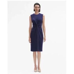 NWT MM Lafleur Taylor 2.0 Dress In Deep Indigo is a perfect option for the office. Size 16. This sleeveless dress features a front twist that makes it so flattering. Has pockets at hips. Back zip closure. Such a stunning shade of navy blue. 82% triacetate, 18% polyester Length: 42 inches