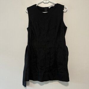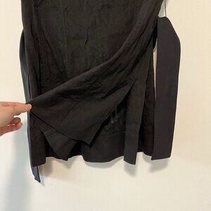 MM Lafleur The Angelina Black Tunic Belt Tie Top in Stretch Linen Split Side 4