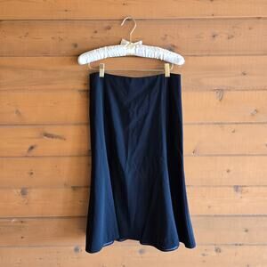 Solid black subtle panel flowy skirt with a back zip. Zip works smoothly with no issues. Great condition, was folded prior to photos.