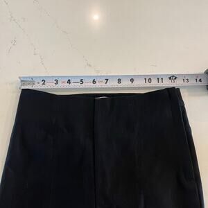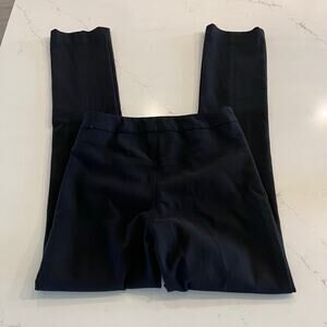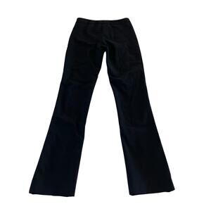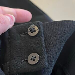 In good used condition. No holes or stains. Some of the threading is coming loose on the top button- please see photo. Black. Side zipper with two buttons. 29" inseam. High rise. Women's size 0.