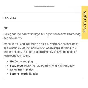 Feature: smooth waist, zipper closure, pockets back, slim legs, crop length, soft and stretchy fabric