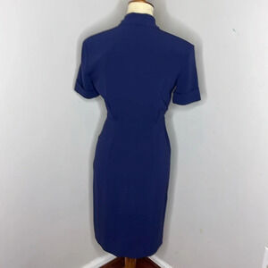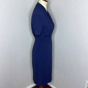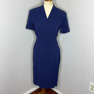 MM Lafleur Tory Dress Blue Crepe Faux Wrap V-neck Knee Length Short Sleeve