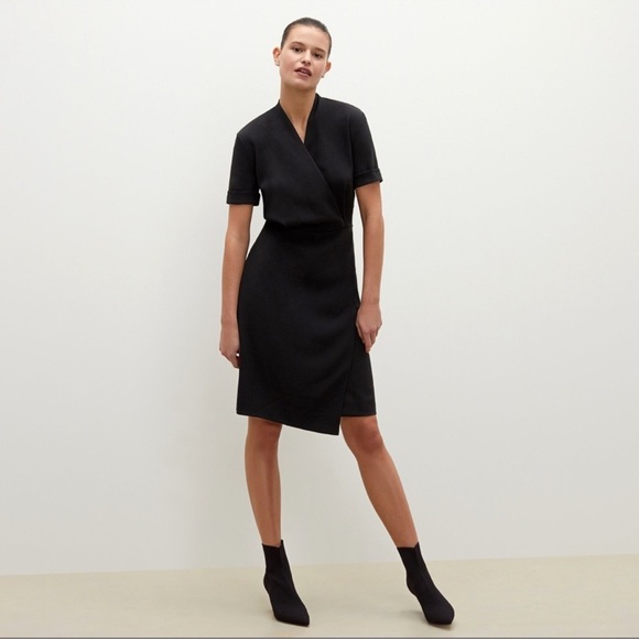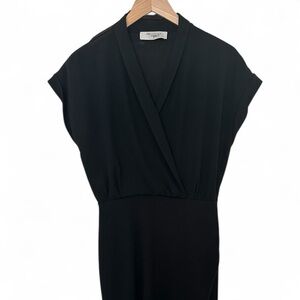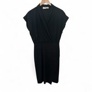 MM Lafleur Tory Dress in Black Size 6 Midi Faux Wrap Short Sleeve