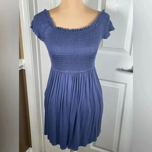 MM MM‎ MM BOUTIQUE SMOCKED DRESS WITH POCKETS LARGE LILAC BLUE COLOR