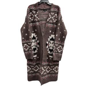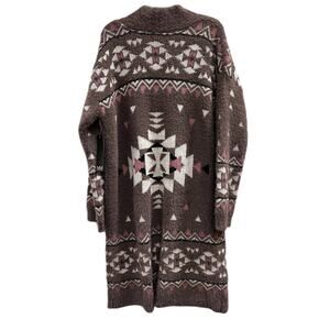 MM My Michelle Dusty Pink fuzzy shaggy Aztec southwest duster sweater NWT Sz XL