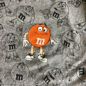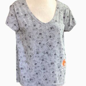 M&M Novelty Graphic Tee Short Sleeve V-Neck Hi-Low Sz XL Gray Orange 159F