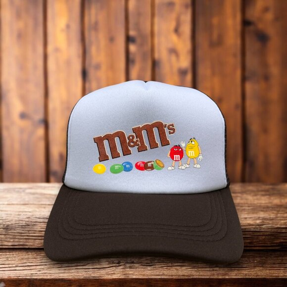M&M Vintage Logo Mens Trucker Hat Brown Snapback Retro Candy Ball Cap