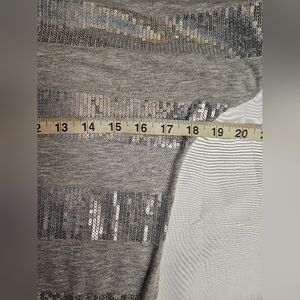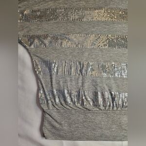 MM Womens Gray And Silver Sequined Striped Short Sleeve Top Size Small no size tags measurements pictured