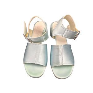 ankle strap sandals, scuba, coated effect, solid color, no appliqués, fabric inner, round toe, geometric heel, leather sole, contains non-textile parts of animal origin.