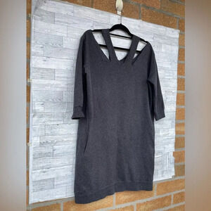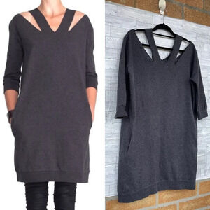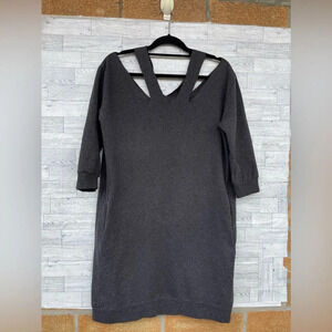 Grey Cut-Out Sweater Dress by Maison Martin Margiela MM6. It features 3/4 length sleeves. In very good condition in the back bottom part there is a small stain not noticeable at all blends with the fabric as you can see in pictures