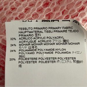 This super lightweight and comfy pink cardigan is from MM6 Maison Margiela. It is made of 32% Acrylic, 24% Mohair, 24% Polyamide and 20% Polyster. It has a loose fit and features white trim and buttons, pink throughout the hems and two front pockets. It is super warm and easy to thrown on in the fall.