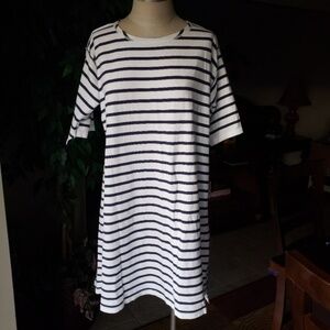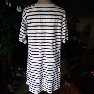 Inside-out stitching and uneven hem stitch enhances the cool, casual style of a soft and lightweight cotton dress ringed in bold stripes.