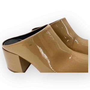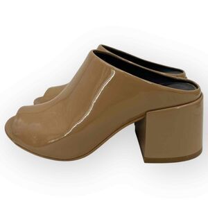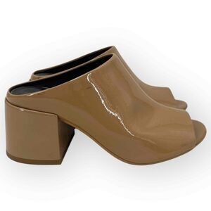 These chic MM6 Maison Margiela mules are a perfect blend of fashion and comfort. Crafted in Italy, they feature a sleek patent leather exterior with a sophisticated block heel, making them an ideal choice for any stylish ensemble. The closed-toe design adds a timeless touch.
