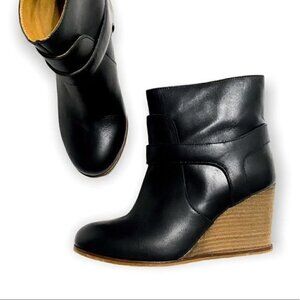 MM6 Maison Martin Margiela Boots Black Leather Wedge Ankle Boots, Size 36.5 EU