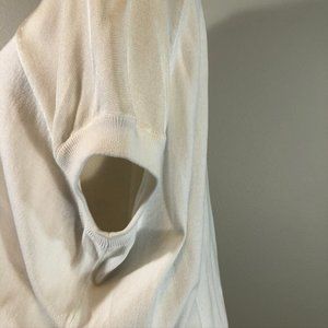 MM6 Maison Martin Margiela white short sleeve drop shoulder v-neck cotton sweater with contrast texture at the shoulders. Gently worn with no visible flaws.