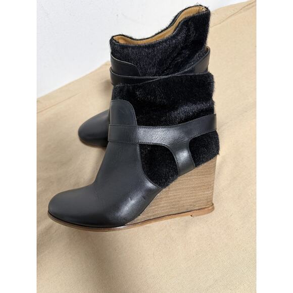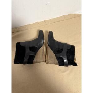 MM6 Margiela Boots Womens Size 40 Black Wedge Fur Ankle Made In Italy