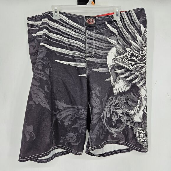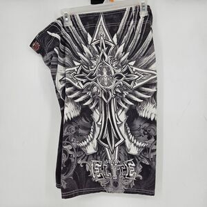 MMA Elite Fight Shorts Mens Extra Large Wrestle Board Shorts Skulls Wings Grunge