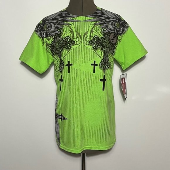 MMA Elite Green T-Shirt With Crosses And Fleur De Lis Design NWT