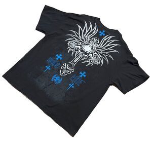 MMA Elite Vintage Y2K T Shirt Skull Goth Wing Cross Skate Grunge Sz XL