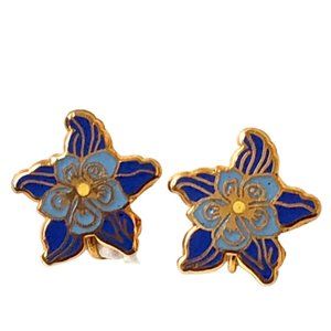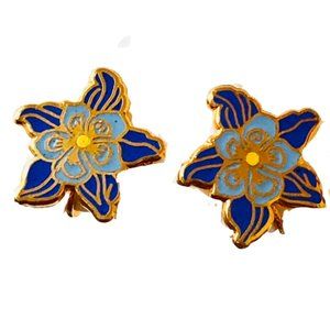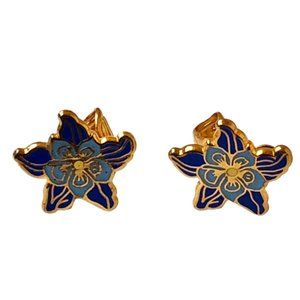MMA Metropolitan Museum Art Blue Enamel Flower Clip-on Earrings Goldplate
