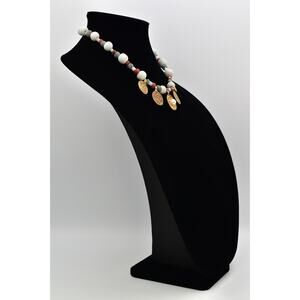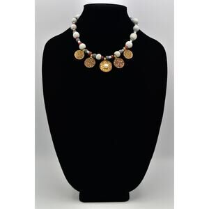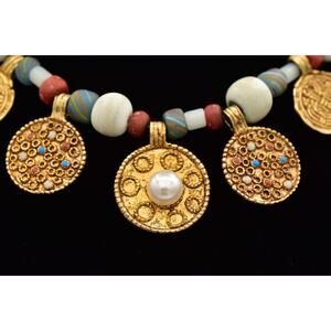 Metropolitan Museum of Arts vintage beaded collar necklace featuring brushed gold medallion charms.
