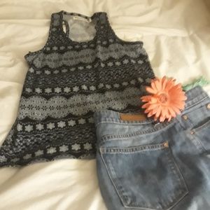 TEE size med sleeveless racer back cotton black SHORT MMG DENIM SIZE 10 SHORT WITH FRINGE HEM