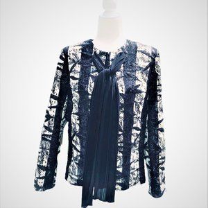 M.MIRANDA Retro Style Sequined Striped Lace Necktie Jacket Sz 18 Made in Turkey