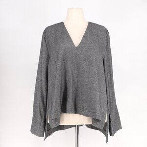 M.M.LAFLEUR The Annette Top High Low Flannel Twill Charcoal Melange Gray Size L