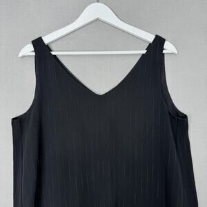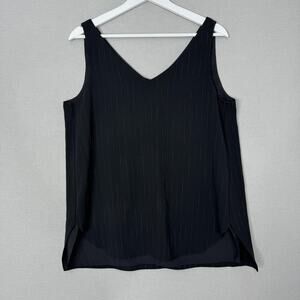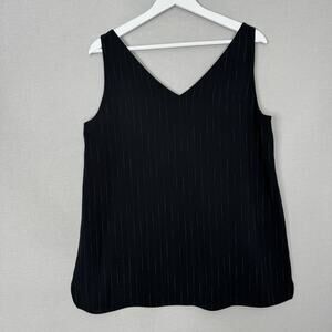 MM LaFleur Rhonda Top Womens Large Black Pinstripe V Neck Blouse Tank Office