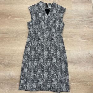 MM. Lafleur Aditi Dress Sheath Crackle Women's 6 Black White Geometric Knee Leng
