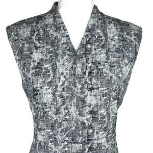 M.M. Lafleur The Aditi Dress in Crackle Black & Ivory V-Neck Sleeveless Sheath 0