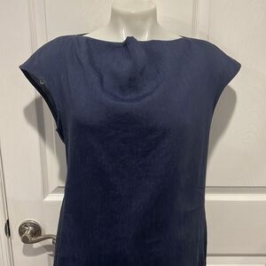 M.M.Lafleur navy blue linen blend cap sleeve below the knee linen blend dress