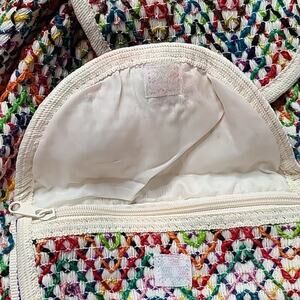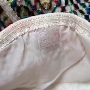 -Excellent condition, but the lining has a couple faint pink spots as shown. These are mainly visible from the inside, but can be seen in two spots on the exterior lower pocket as well. The bag looks fabulous overall!
