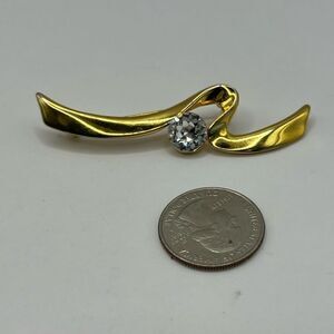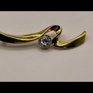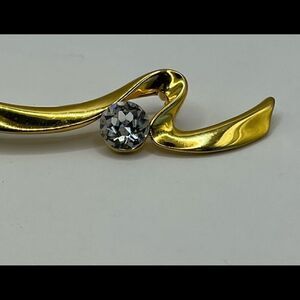 This is a MMOO gold tone ribbon with CZ brooch in like new condition. Really nice and very modern.
