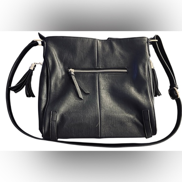 This elegant black crossbody bag from MMS Design Studio combines style and functionality with its smooth leather finish and adjustable strap. The structured design and versatile color make it a timeless accessory for any occasion. Like new!
