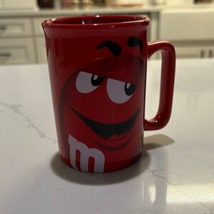 Vibrant red mug featuring M&M'S character. Perfect for coffee or tea. Excellent condition