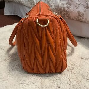 Beautiful Orange-Vegan Leather Satchel! Like New! Very slight wear on the bottom of bag (see pictures)