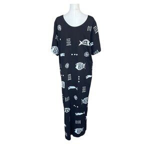 M.Mac Vermont Country Store Black Fish Dress Size 1X Short Sleeve Long Cotton